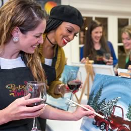 The holiday season is here and there's no better place to celebrate than at Painting with a Twist! Browse our holiday art collection of seasonal favorites from classic snowmen to beautiful mountain winterscapes. With wine (or your favorite beverage) in hand, you'll follow along with our artist-entertainer to complete your very own holiday decor to hang in your house!