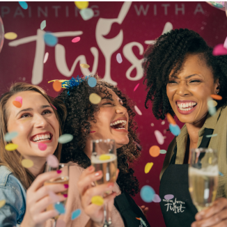In a nutshell, because we KNOW how to pARTy! And when you throw a private party with us, you get a few extra perks from our traditional painting events, too. You’ll have your own dedicated artist-entertainer to walk your guests through painting something YOU choose from our extensive library! Plus you get to pick the date, time and most studios have a separate dedicated space for your crew. Check with your local studio on all the options available to you, as they may differ from one studio to the next!