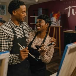 Absolutely! Valentine's Day is the perfect time to gather with other couples or your group of girlfriends for Galentine's! With our private parties, you get to choose the painting and we'll provide everything your party guests need to paint their own Valentine or other-themed artwork! Can't be physically with your significant other or girlfriends this year? Many of our studios are hosting virtual private parties to accommodate the unique circumstances! Whether your Valentine's Day event is in-studio or virtual, we promise you'll have a blast.