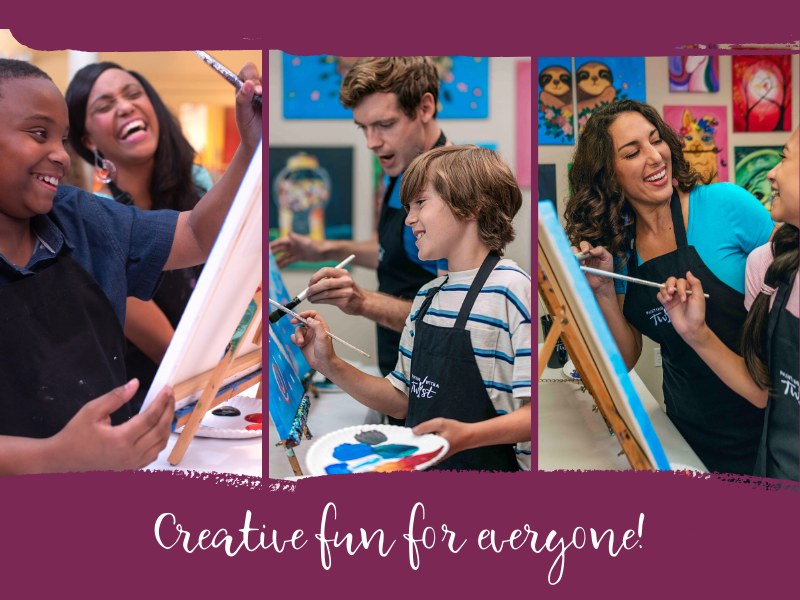 Whether you're looking for a kids' painting event, a family paint night, or a special painting party just for the little ones, we've got you covered! Our studio is a welcoming environment where creativity flourishes and bonds strengthen. Join us – unforgettable family moments are waiting to be painted! Check out our Family Day events, afternoon events, and weekday events for the whole family.